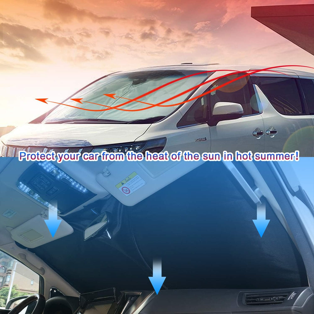 - 【EINFACH EINZURICHTEN】Einfach mit der silbernen Seite nach aussen gegen die Windschutzscheibe legen und durch Herunterklappen der Sonnenblenden sichern.