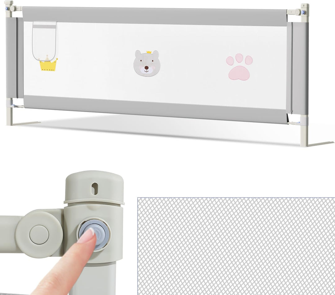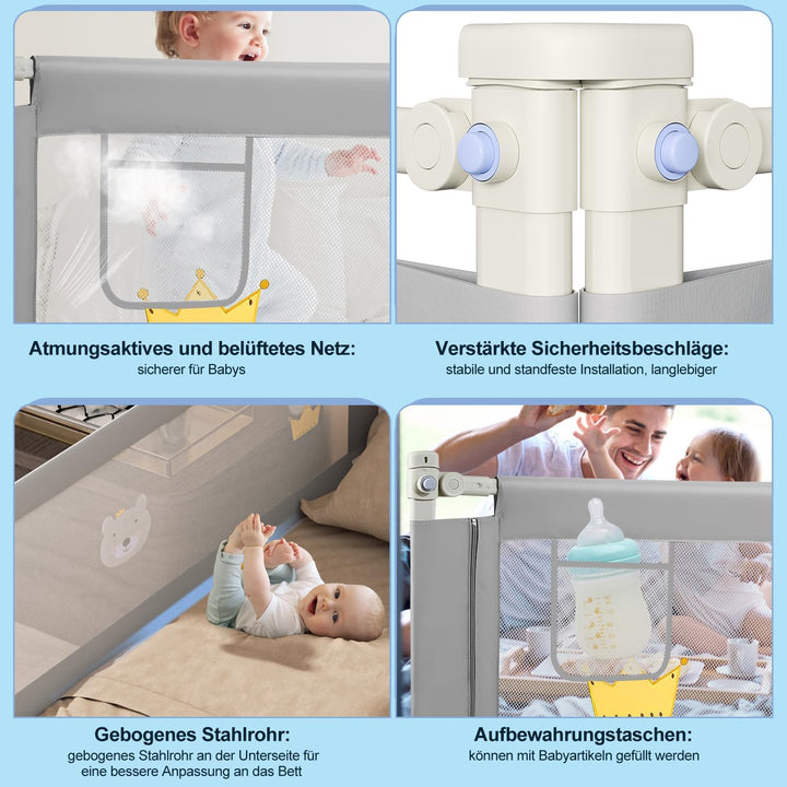• 【Hochwertiges Material】Der Gesamtrahmen von Babybettgitter ist aus hochwertigem, verdicktem Stahlrohr gefertigt, das sehr stabil und haltbar ist und nicht leicht bricht. Das atmungsaktive Mesh-Polyestermaterial ist atmungsaktiv und bequem, und das
