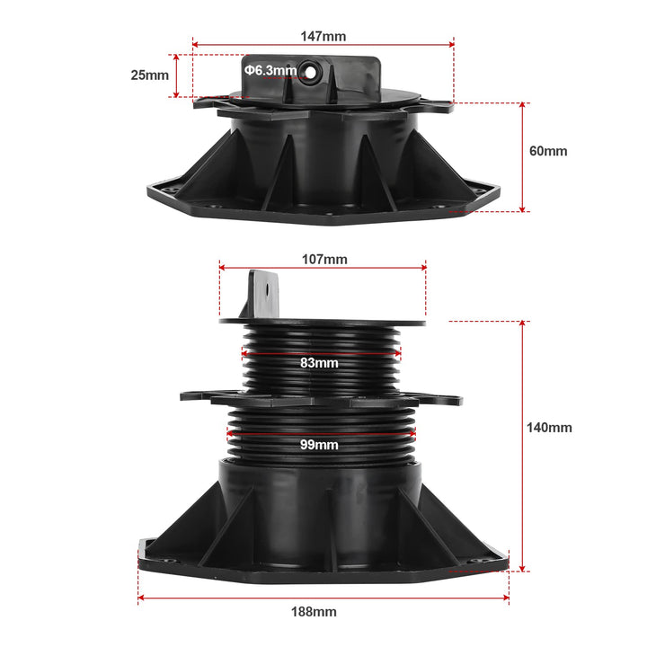 • 【Hohe Belastbarkeit】10 Stück höhenverstellbare Stelzenlager mit einem Auflageflächendurchmesser von 107 mm - Fussdurchmesser von 188 mm, dadurch optimale Stabilität.