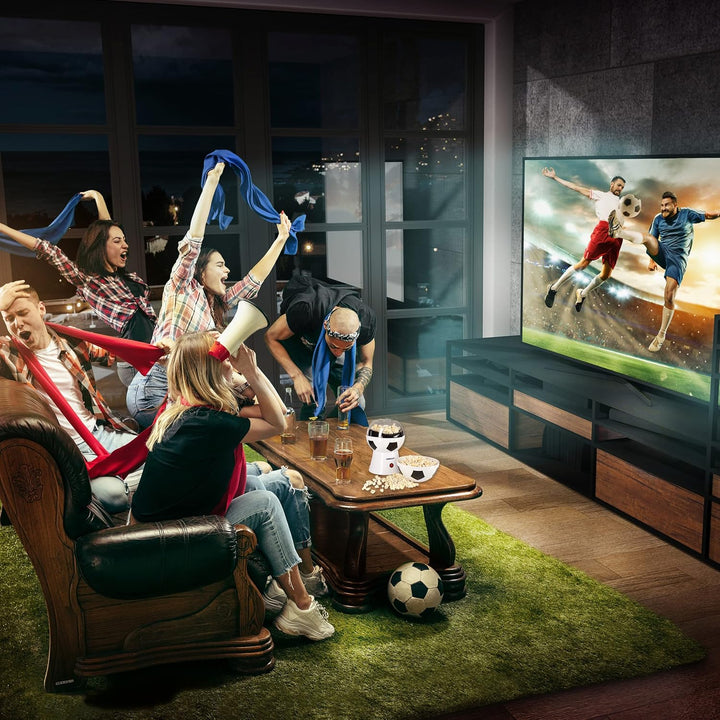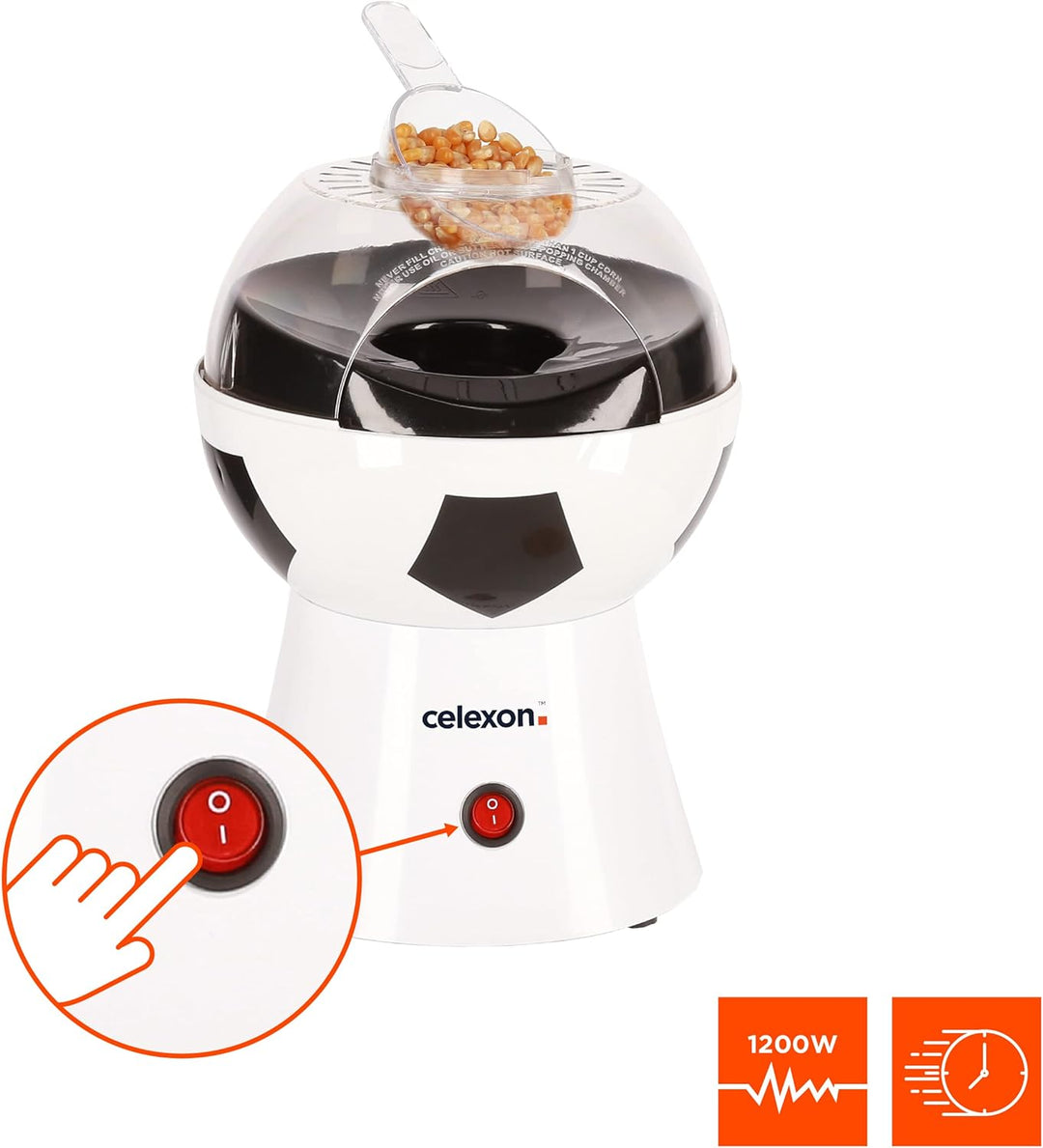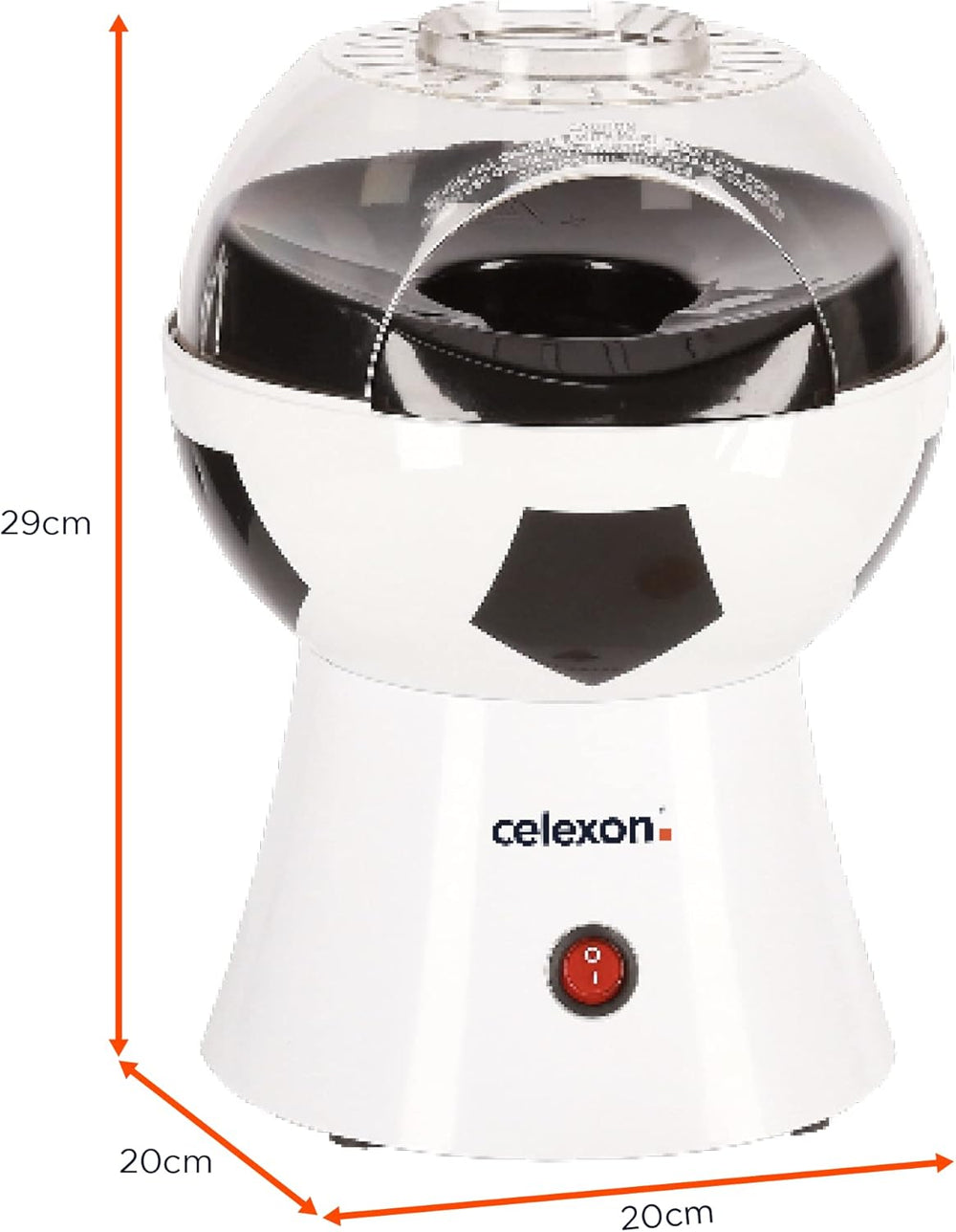- Masse: 20x20x29 cm (LxBxH), Gewicht: 1,2kg, Füllmenge: 60g, Leistung 1200 Watt, Farbe: Fussball-Design-weiss