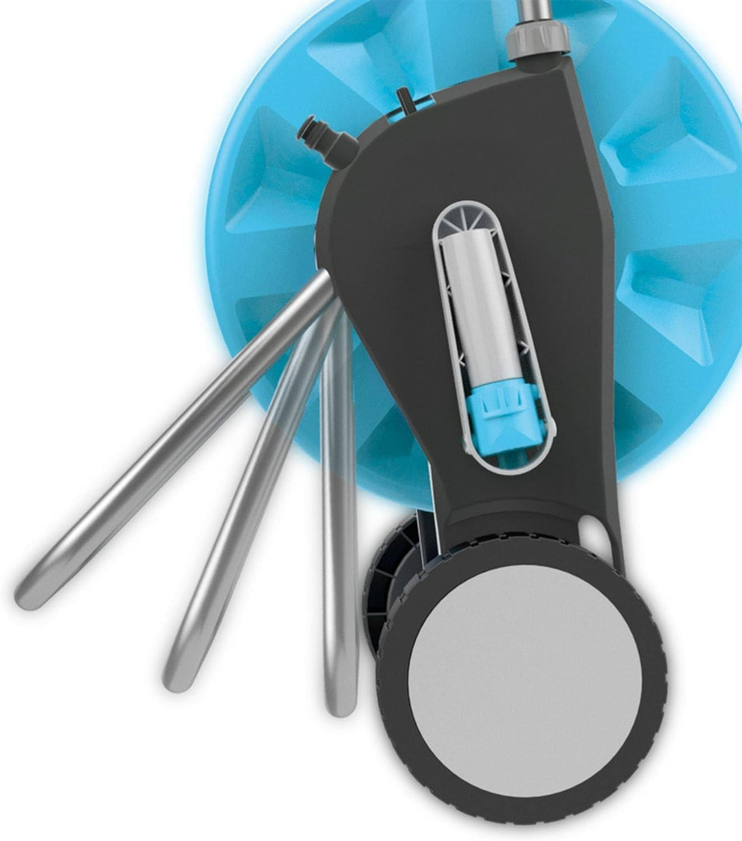 - VORTEILE: Hineinschlagende Standfüsse machen den Schlauchwagen während des Entrollens vom Schlauch stabil. Höhenverstellbarer, bequemer und rutschfester Gummigriff