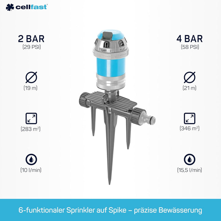 Cellfast Sektorenregner POWER sz IDEAL™ 6-Funktion-Regner auf Erdspiess Basis, ausgeführt aus Kunsts