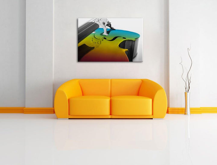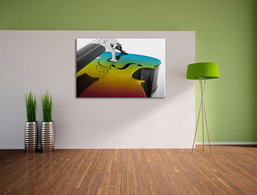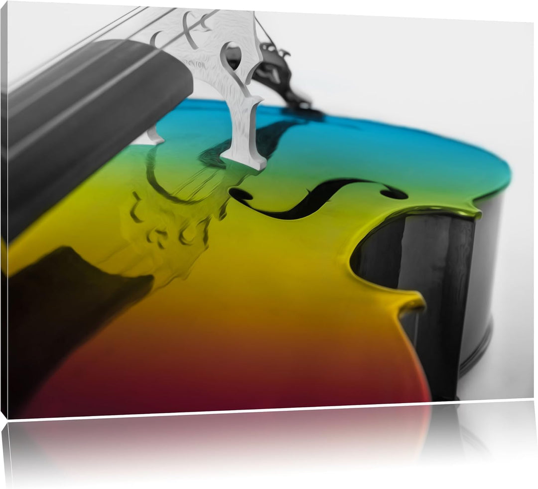 Cello in Regenbogenfarben gehalten schwarz/weiss Format: 100x70 auf Leinwand, XXL riesige Bilder fer