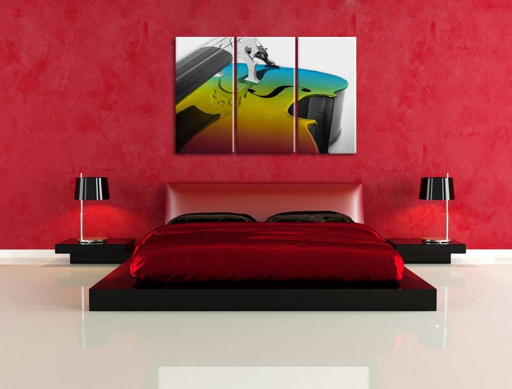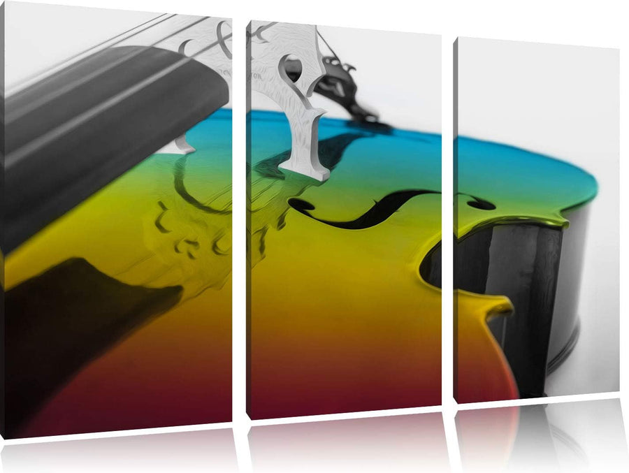 Cello in Regenbogenfarben gehalten schwarz/weiss 3-Teiler Leinwandbild 120x80 Bild auf Leinwand, XXL
