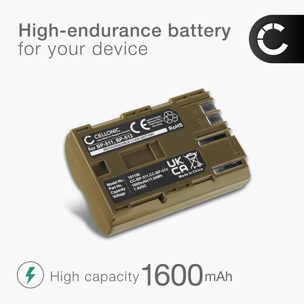 - MEHR FOTOS UND LÄNGERE VIDEOS - Mit der hohen Kapazität von 1600mAh liefert der Zusatzakku lange Laufzeiten und die nötige Energie für ausgedehnte Fotoshootings und längere Videodrehs. Ersetzt Ihren BP-511,-512,-514,BP-508 Originalakku