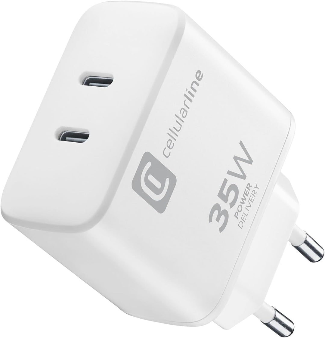 Cellularline | Dual Charger 35W | Power Delivery 35W Netzwerk-Ladegerät mit Dual-USB-C-Anschluss - L