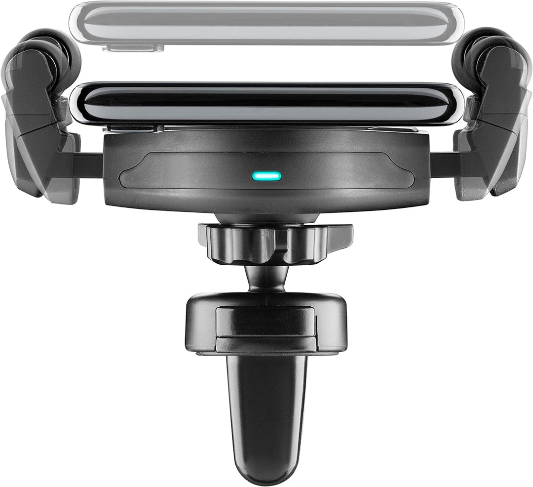 • Kompakt und vielseitig: mit Klemmmechanismus, der das Smartphone nur an zwei Seiten umschliesst Smartphone stets geladen: Dank der Wireless-Technologie Qi kann das Smartphone auch im Auto geladen werden