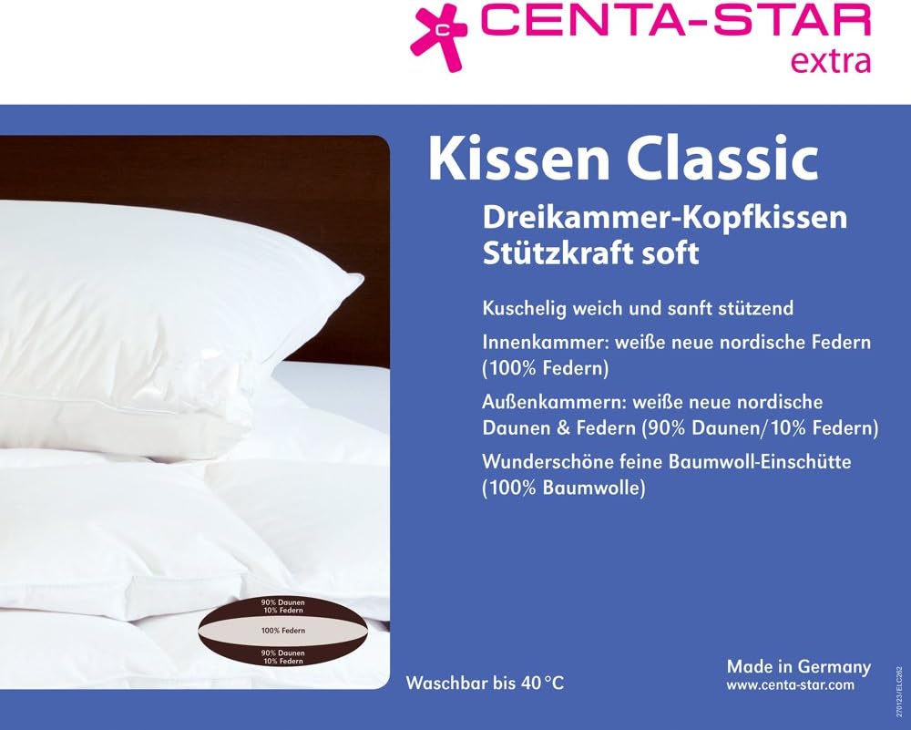 - Kissen Classic Dreikammer-Kopfkissen Stützkraft soft. Kuschelig weich und sanft stützend, Made in Germany