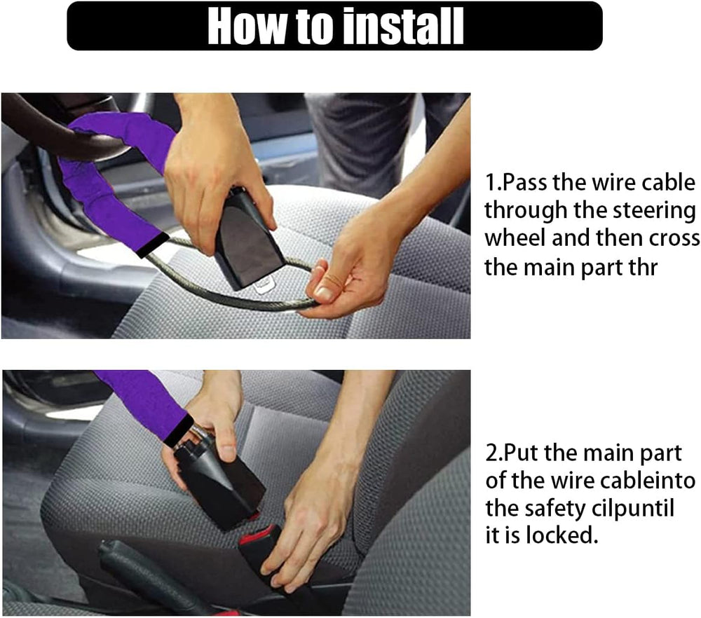 - 【Einfach zu Benutzen】: Wickeln Sie die Autosicherung um das Lenkrad und befestigen Sie sie in Sekundenschnelle an Ihrer Sitzhalterung. Praktischer und benutzerfreundlich, unabhängig vom Alter. Dieses Auto Diebstahlschutz ist viel einfacher als eine