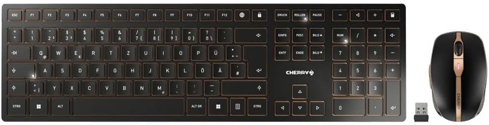 - Kabelloses Desktop-Set: Wahlweise Verbindung über 2,4 GHz Funk mit extra kleinem Nano-Empfänger oder per Bluetooth - sichere AES-128 Verschlüsselung für Maus und Tastatur