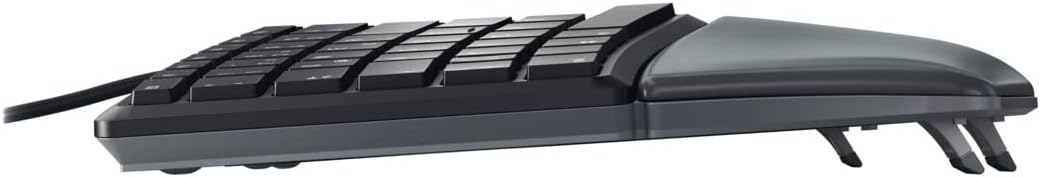 • Ergonomische Kabeltastatur mit geschwungenem Tastenfeld und Handauflage: Für natürlichere Körperhaltung und stressreduziertes Arbeiten am Computer