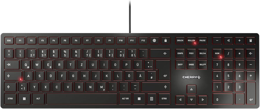 - Für stilbewusste Anwender: Puristisches Trend-Design mit rot hinterlegten Tasten* macht die Kabeltastatur zum Eyecatcher auf jedem Schreibtisch (* Tastatur ist nicht hintergrundbeleuchtet)