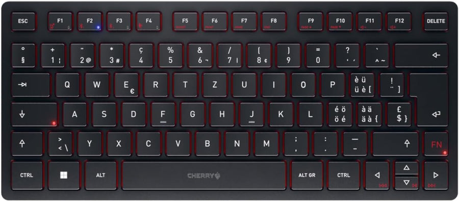 CHERRY KW 9200 Mini, kompakte Multi-Device-Tastatur für bis zu 4 Endgeräte, Schweizer Layout (QWERTZ