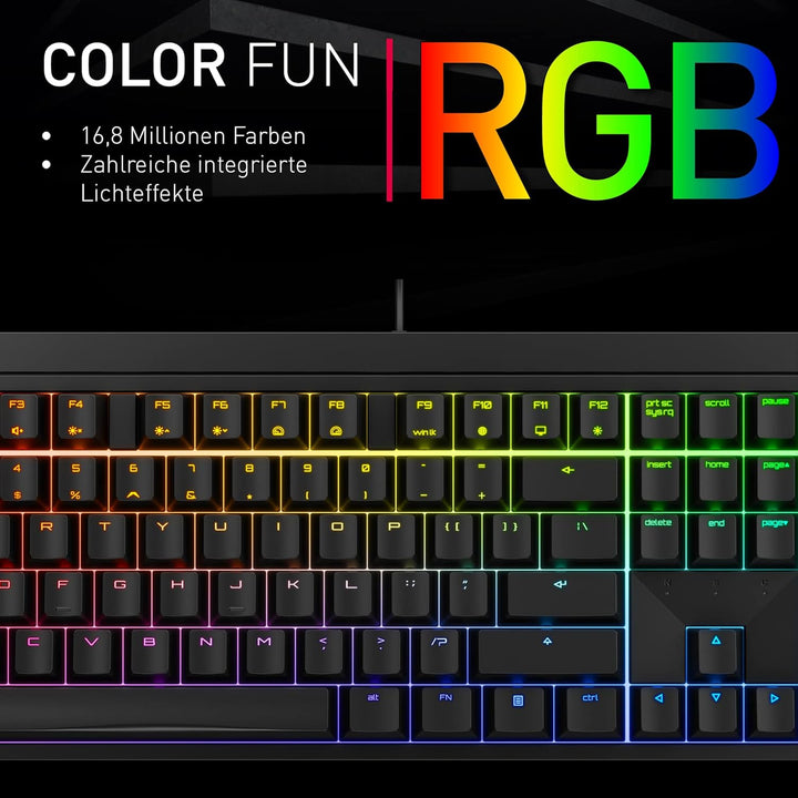 - Lebendige RGB-Hintergrundbeleuchtung mit über 16 Mio. Farben: Zahlreiche integrierte Farbspiele und Lichteffekte (Individuell programmierbar mit der CHERRY UTILITY Software)