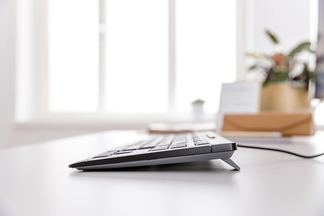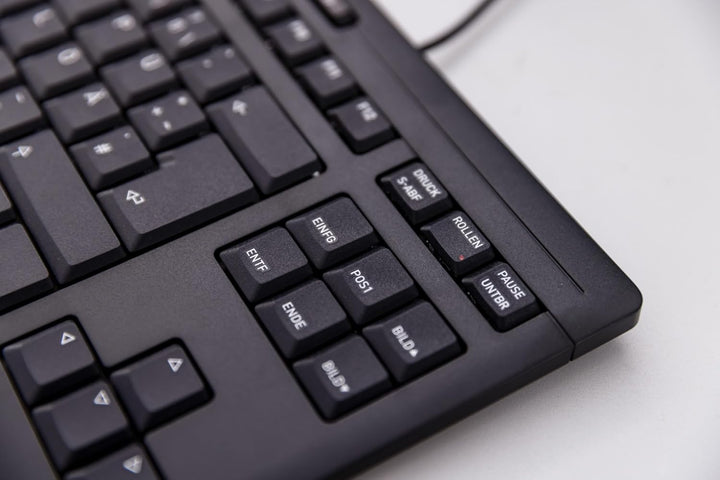- Hochwertige Kabeltastatur ohne Ziffernblock: Flach, zuverlässig und flüsterleise - ausgezeichnet mit dem Umweltzeichen „Blauer Engel“ sowie dem GS-Siegel „Geprüfte Sicherheit“