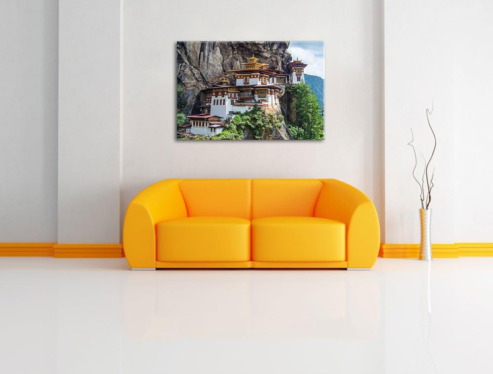 Chinesische Festung im Berg Format: 100x70 auf Leinwand, XXL riesige Bilder fertig gerahmt mit Keilr