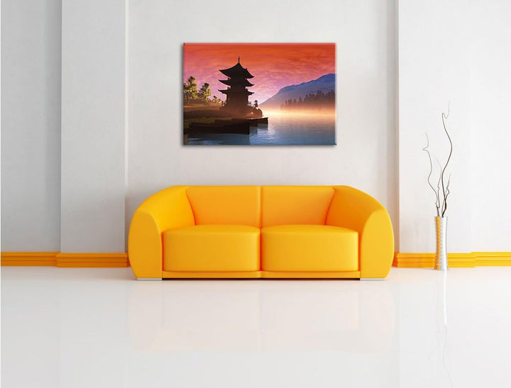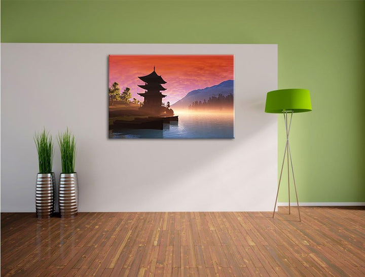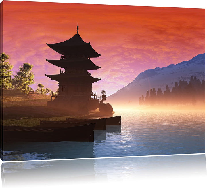 Chinesisches Haus, Format: 100x70 auf Leinwand, XXL riesige Bilder fertig gerahmt mit Keilrahmen, Ku