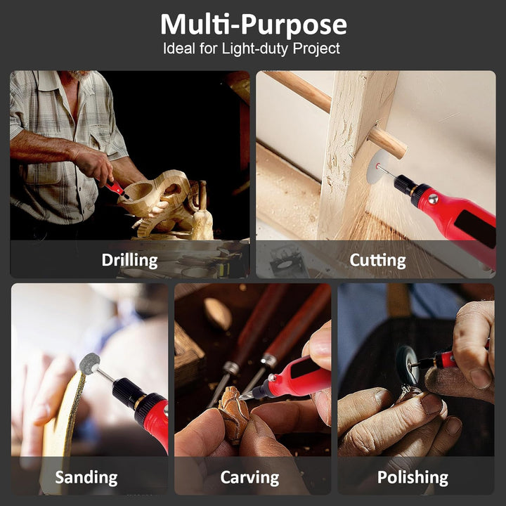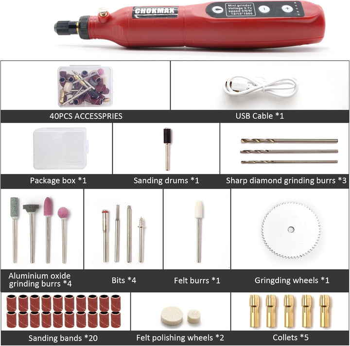 - 🔶 VIELFÄLTIGES DREHWERKZEUG-ZUBEHÖR - Dieses Drehwerkzeug-Set enthält ein leistungsstarkes und geräuscharmes Drehwerkzeug mit 42 der beliebtesten Elektro-Drehwerkzeug-Zubehörteile für feine Heimwerkerarbeiten. Dieses elektrische