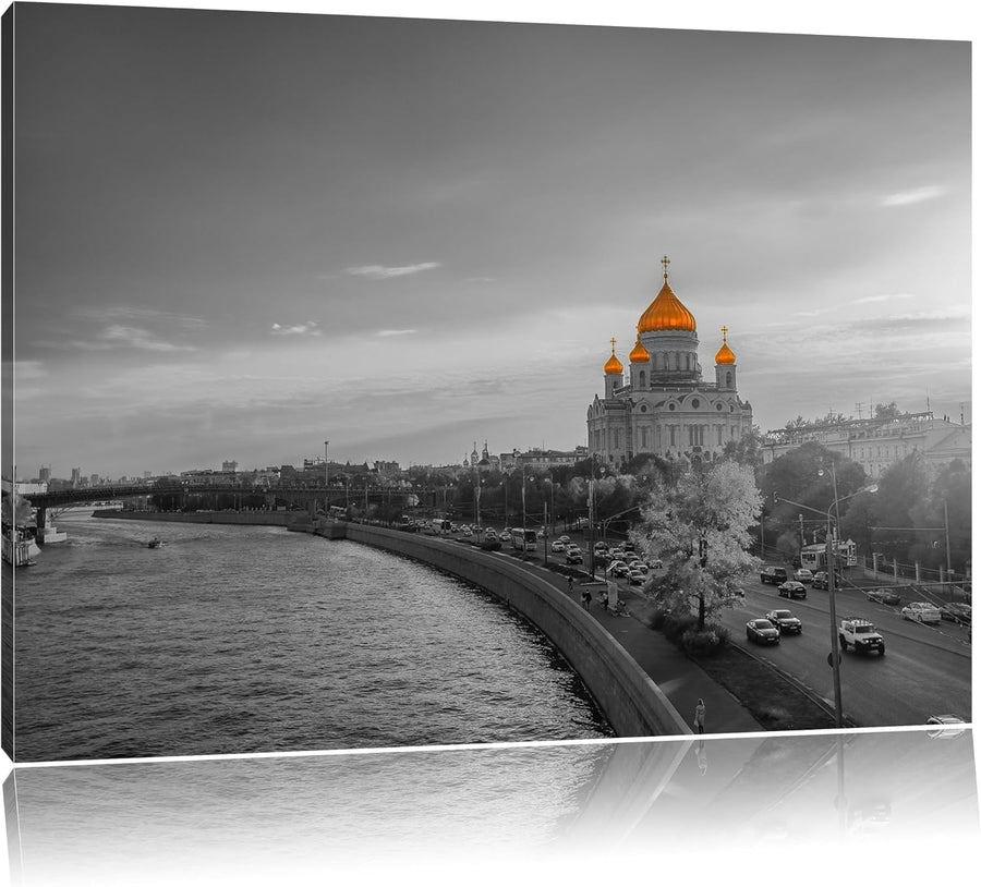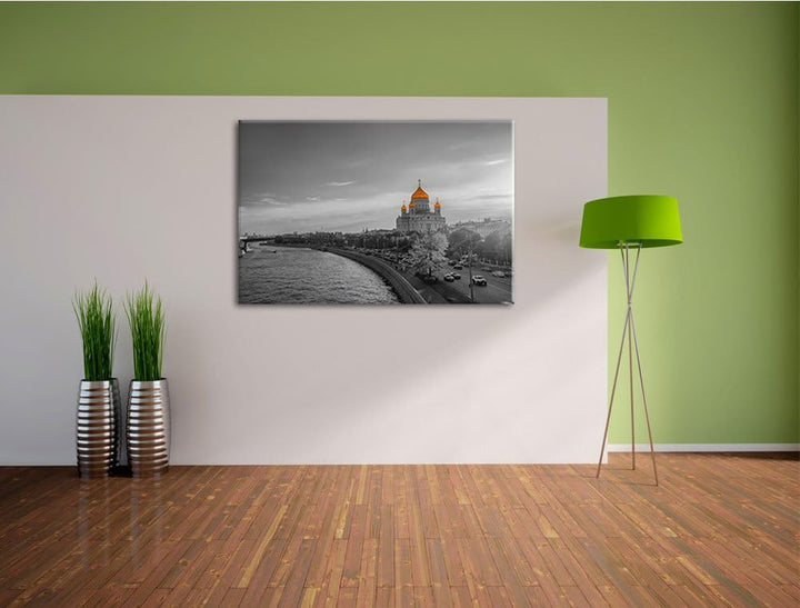 Christ-Erlöser-Kathedrale in Moskau schwarz/weiss Format: 100x70 auf Leinwand, XXL riesige Bilder fe