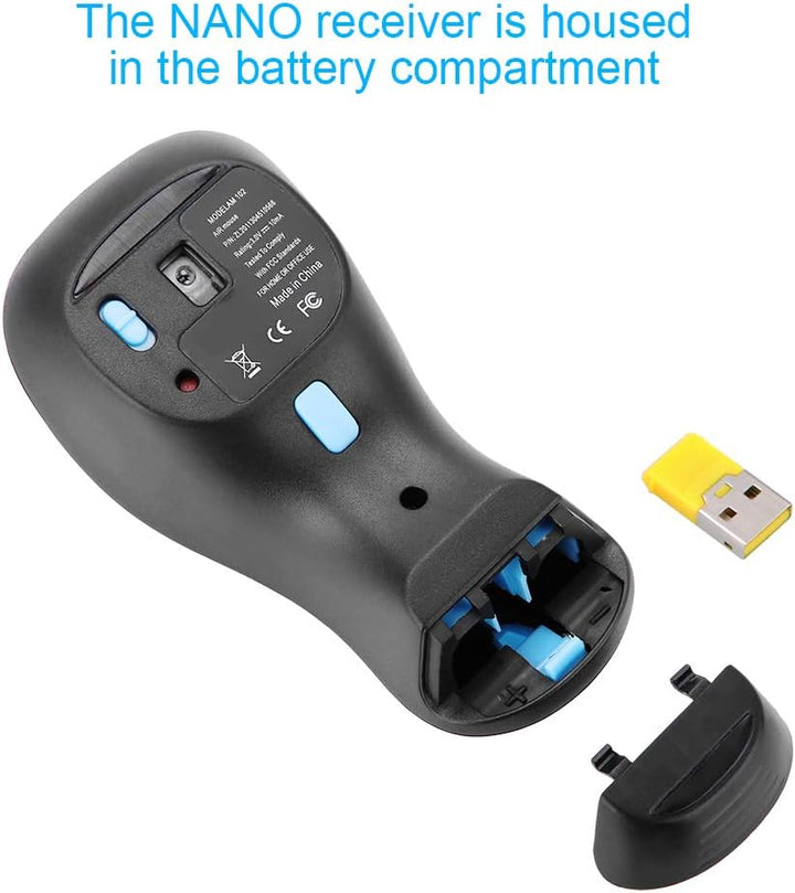 - [Einfach zu Bedienen] - Drücken Sie die Aufbewahrungstaste, um das Batteriefach zu öffnen, nehmen Sie den Nano-Empfänger aus dem Batteriefach, schliessen Sie ihn an den USB-Anschluss des Computers an, legen Sie zwei AAA-Batterien (nicht im