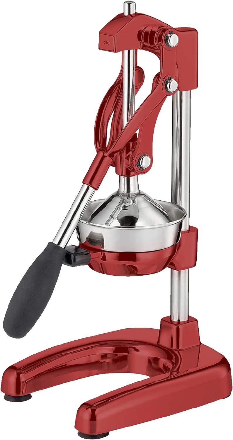 - MULTIFUNKTIONAL: Ob als Zitronenpresse, Orangenpresse oder Mandarinen Presse, die Cilio Saftpresse ist die ideale Handpresse für Zitrusfrüchte und Granatäpfel. Halbieren, auf den Presskegel legen und Hebel ziehen!