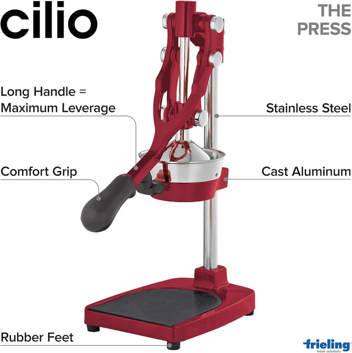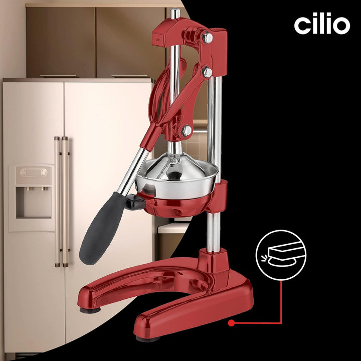 - EINFACHE HANDHABUNG: Die Hand Saftpresse von Cilio lässt sich ganz einfach über den Hebel bedienen. Die vier Saugfüsse sorgen für einen sicheren Stand. Praktisch: Kerne und Fruchtfleisch bleiben im Presskegel!
