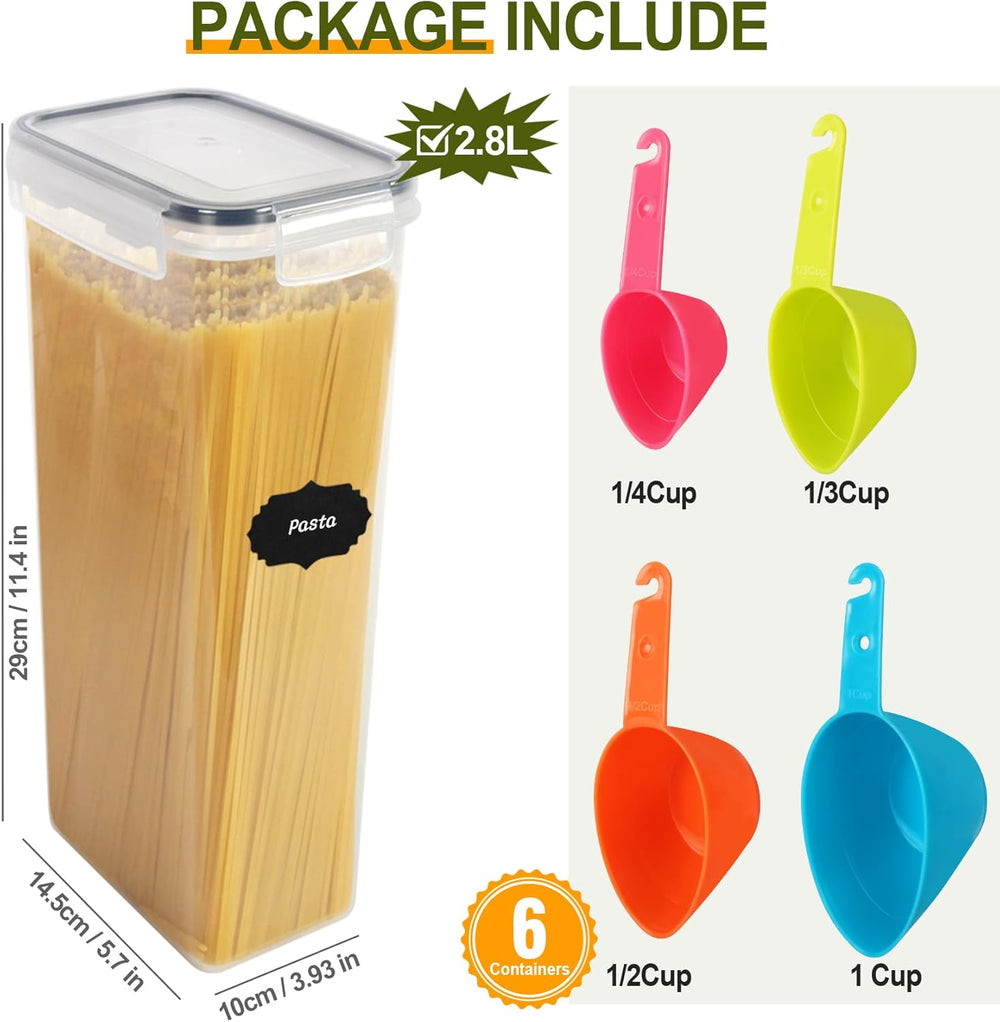 - 🍅Perfekt für die Aufbewahrung in der Küche: Dieses Behälterset enthält 6 Extra Grosse Behälter Gesamtkapazität 16.8 Liter), Sie können sie zur Aufbewahrung von Backwaren, Cheerios, Haferflocken, Nudeln, Müsli, Reis, Mehl, Zucker, Kaffee, Tee,