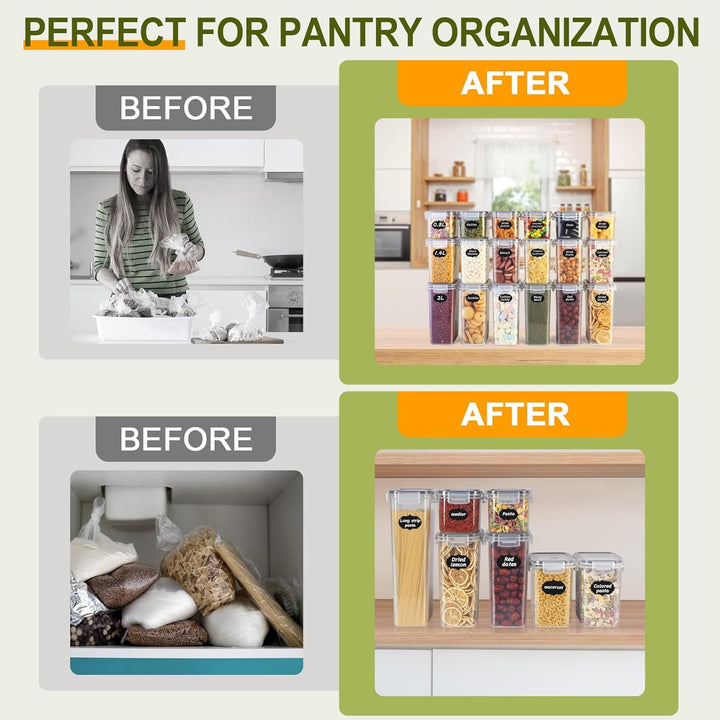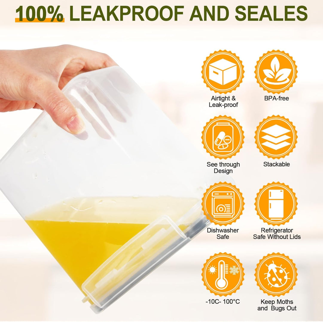 - 🍅4-Seitige Verschlussdeckel: Sie sind auslaufsicher, sodass weder Feuchtigkeit noch Luft eindringen können. So bleiben Ihre trockenen Lebensmittel frisch und ordentlich.