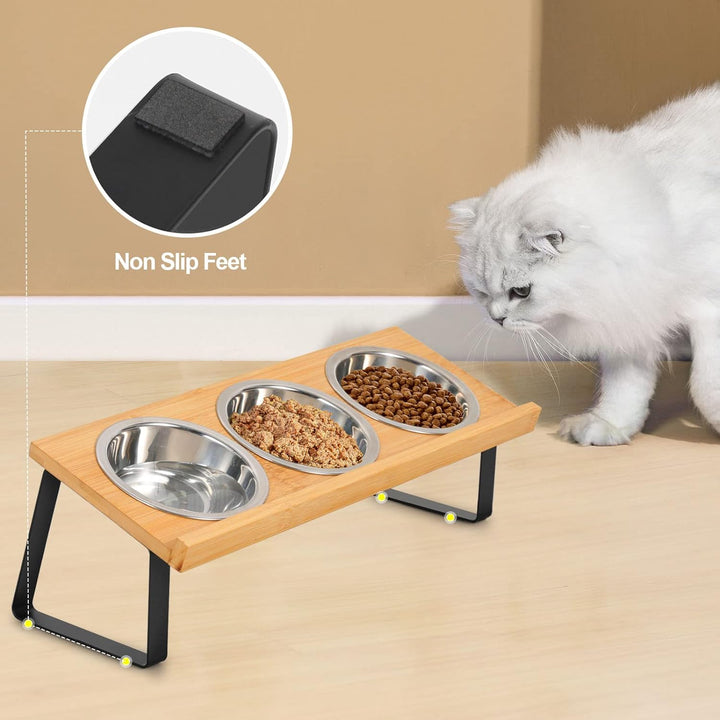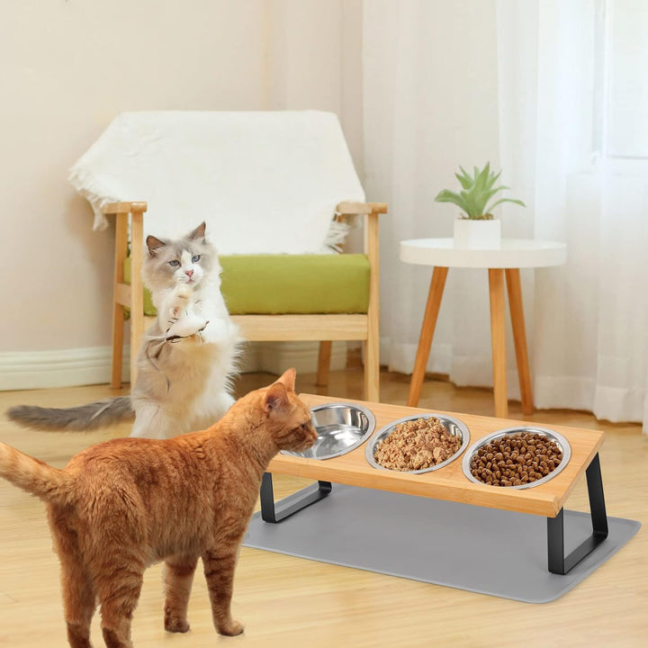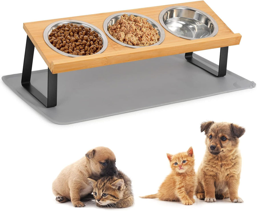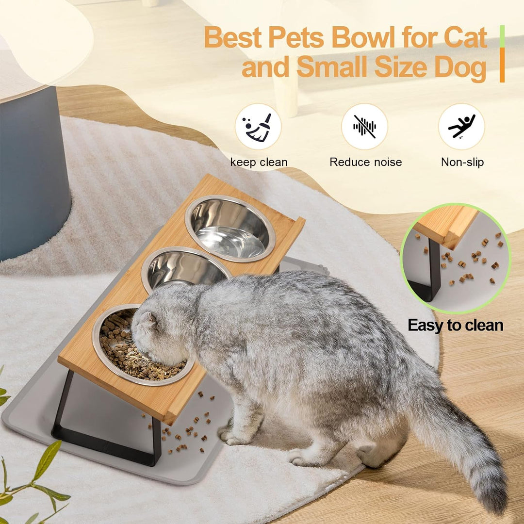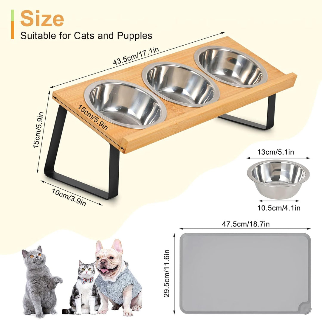 - 3 Schalen: Trockenfutterschale, Nassfutterschale, Wasserschale, die das Trocken- und Nassfutter von Haustieren trennen kann, und das Fassungsvermögen jeder Schale beträgt 350 ml.