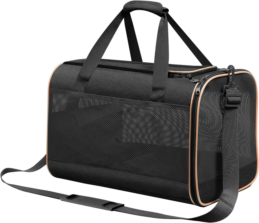 - Stabile und Robuste Konstruktion: Die verstärkte Stahlwirenstruktur und die verdickte Bodenplatte bieten hervorragende Tragfähigkeit und Stabilität. So bleibt die Tasche in Form und Ihr Haustier sicher und geschützt.