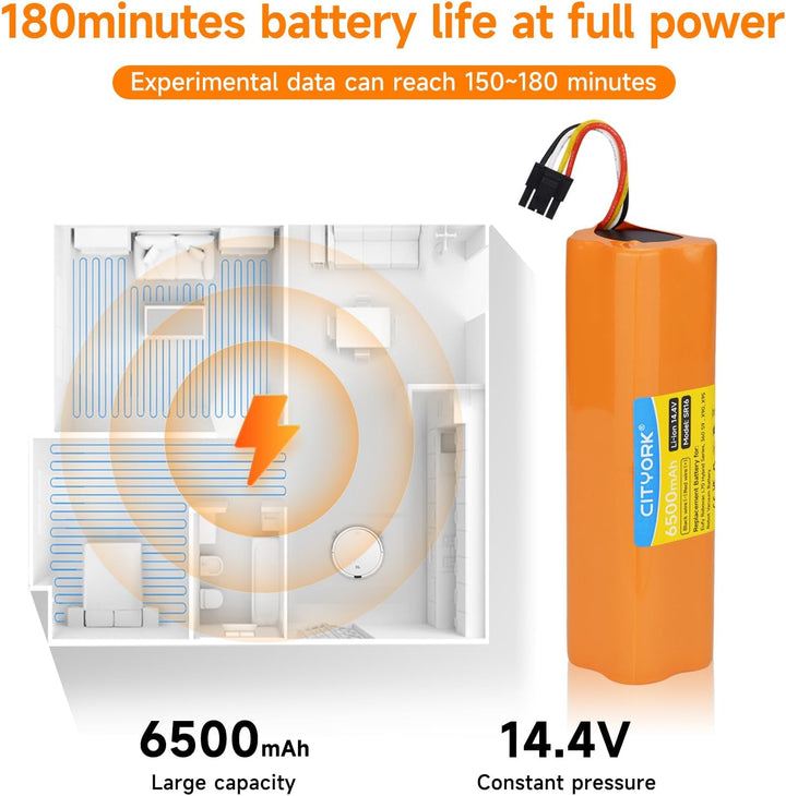 - 🔋Typ: Lithium-Ionen-Akku, Spannung: 14,4 V, hohe Kapazität: 6500 mAh