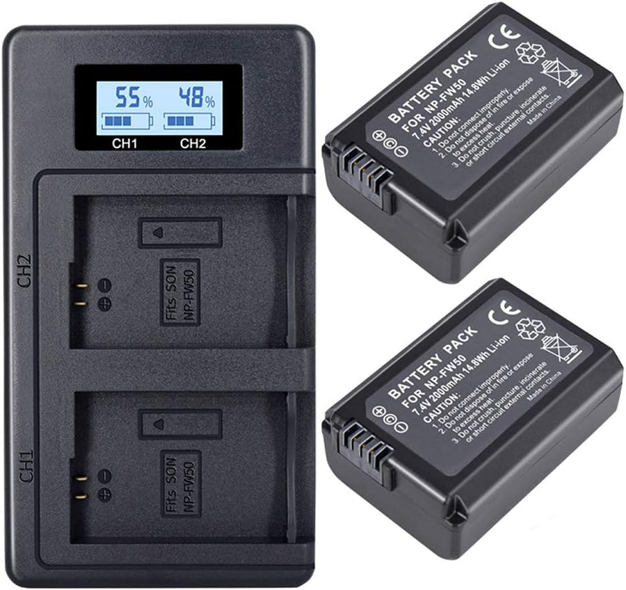 - 🎈 🎈 Lieferumfang】 2xNP-FW50 2000mAh Akku + 1xNP-FW50 LCD-Ladegerät (mit USB-Ladegerät) + 1x Bedienungsanleitung (12 Monate Herstellergarantie ab Kaufdatum, 7 * 24-Stunden-E-Mail-Kundendienst)