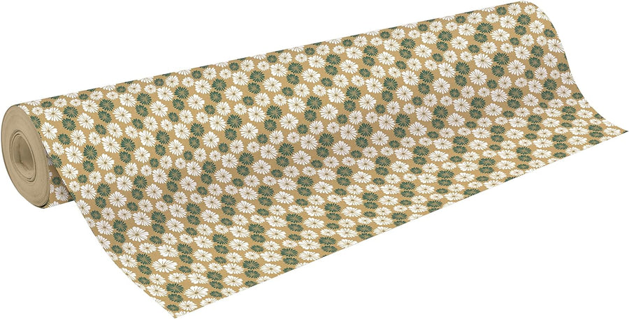 - DESIGN : Eine Rolle Kraftpapier mit Gänseblümchen auf braunem Hintergrund; Motiv ideal für die ganzjährige Verwendung