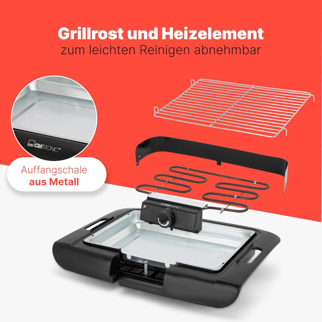 - Das verchromte Grillrost ist abnehmbar, ebenso wie die Metallauffangschale und das Heizelement – für eine mühelose Reinigung des elektrischen Grill nach der Benutzung