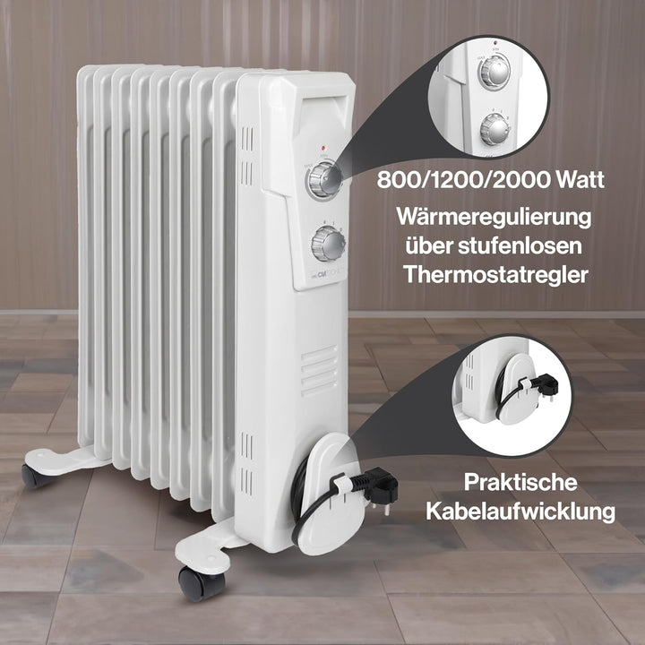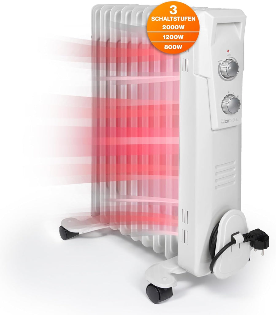 - Mobile Wärme für Zuhause — Übergangs- oder Zusatzbeheizung leicht gemacht mit Clatronic und dem 9 Rippen-Ölradiator. Neben dem Wohnzimmer oder der Küche, können Sie die Heizung auch in Gartenhäusern, Garagen oder Wintergärten nutzen.