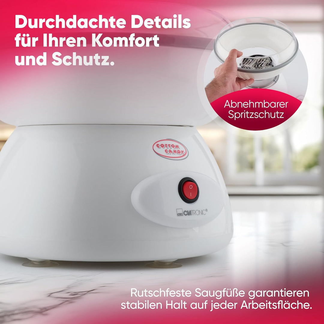 - Die Saugfüsse sorgen für einen festen Stand der Zuckerwattemaschine, während Sie süsse Kunstwerke erschaffen - Ein sicheres und unterhaltsames Erlebnis für Gross und Klein