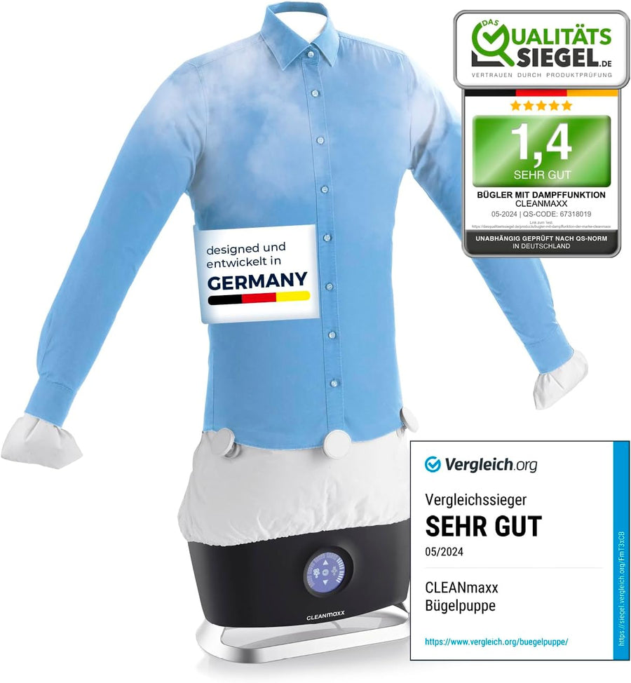 - GOODBYE, BÜGELN: Erlebe mit dem CLEANmaxx Hemdenbügler PRO STEAM vollautomatisches Bügeln & spare Zeit im Alltag. Du brauchst nur noch diese Dampfbügelstation für alles; nie wieder Bügeleisen, Bügelbrett, Wäschetrockner oder Steamer. On top gibt