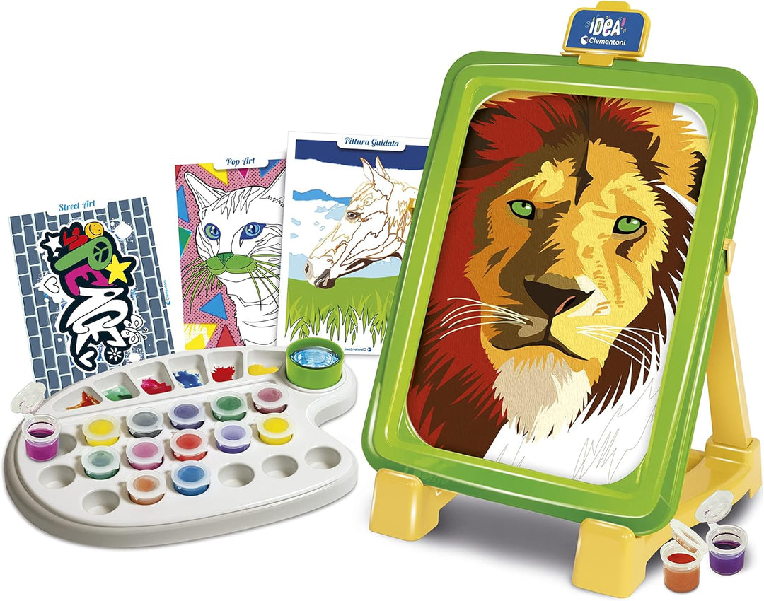 Clementoni 18677 Idea-Atelier Der Malerei Staffelei zum Malen nach Zahlen-Tafel mit Ständer-Malset K