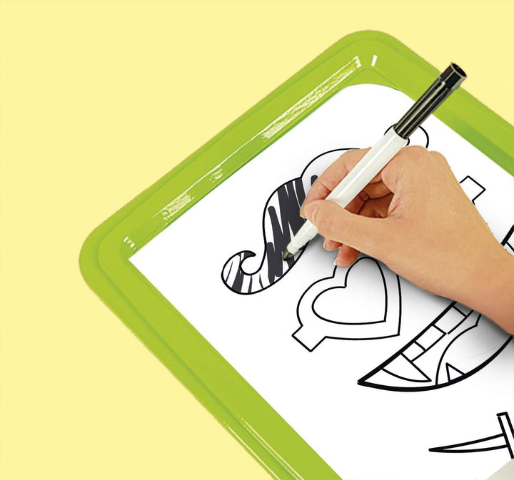 • Inhalt des Spiels: Tafel, normale Tempera, Neon, Metallic, Pinsel, Marker, vordefinierte Karten und Outline, um Ihr Kind zum Experimentieren verschiedener Zeichentechniken zu führen
