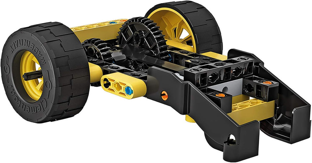 - Mit über 200 austauschbaren Komponenten, darunter: flache und konische Zahnräder, Zahnstange, Differential, Schneckengetriebe, Stollenreifen, Stangen und Platten