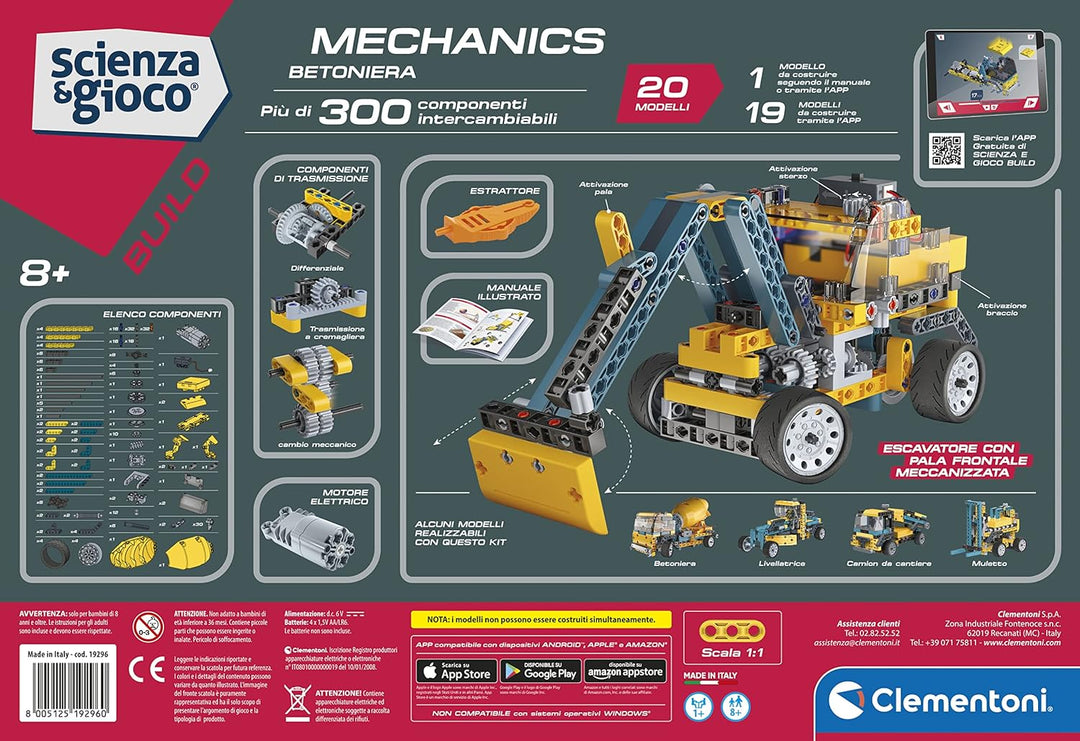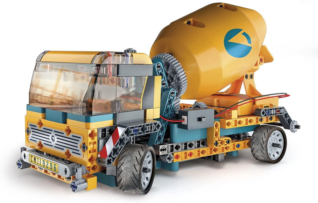 - Mechanische Labor: Ein fantastischer, motorisierter Betonmischer-LKW, das alles zum Experimentieren und Lernen der wichtigsten Konzepte der Mechanik und Technik