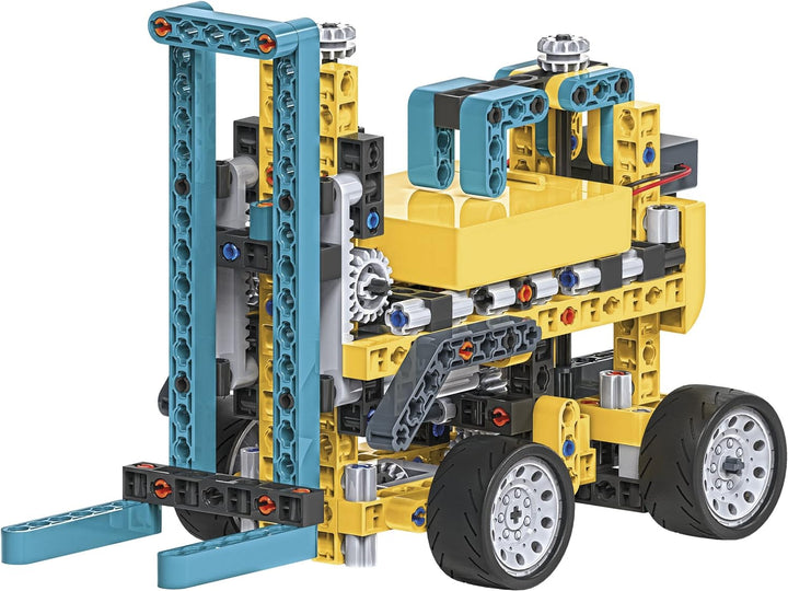 - Spielinhalt: 20 Modelle von Baustellenmaschinen zur Herstellung mit über 250 Komponenten, einschliesslich: Elektromotor, Batteriefach, flache und konische Zahnräder, Differential, Übertragungsmodul