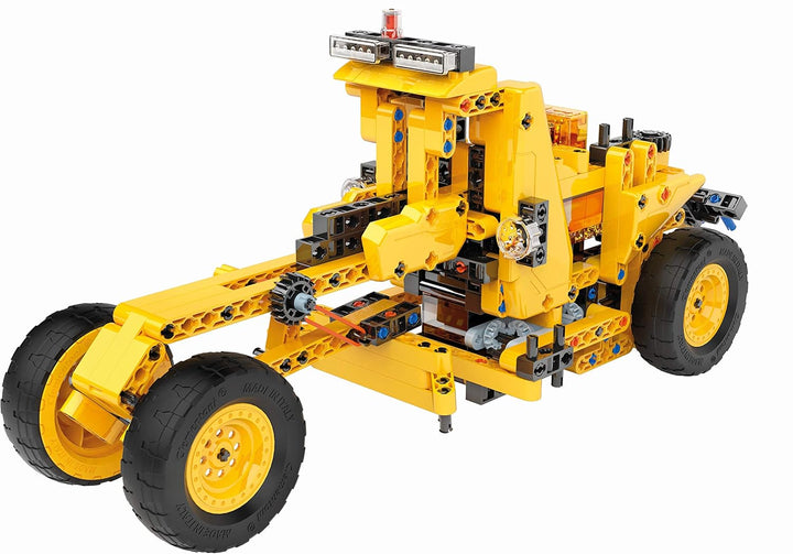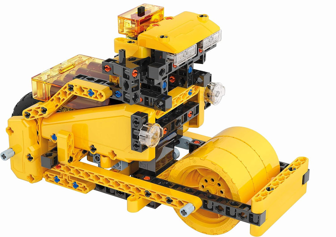 - Naturwissenschaft verstehen: Mit diesem Baukasten entdecken angehende Techniker 10 verschiedene Typen von Baufahrzeugen, wie Bagger, Grader und Planierraupe, die sie selbst steuern können