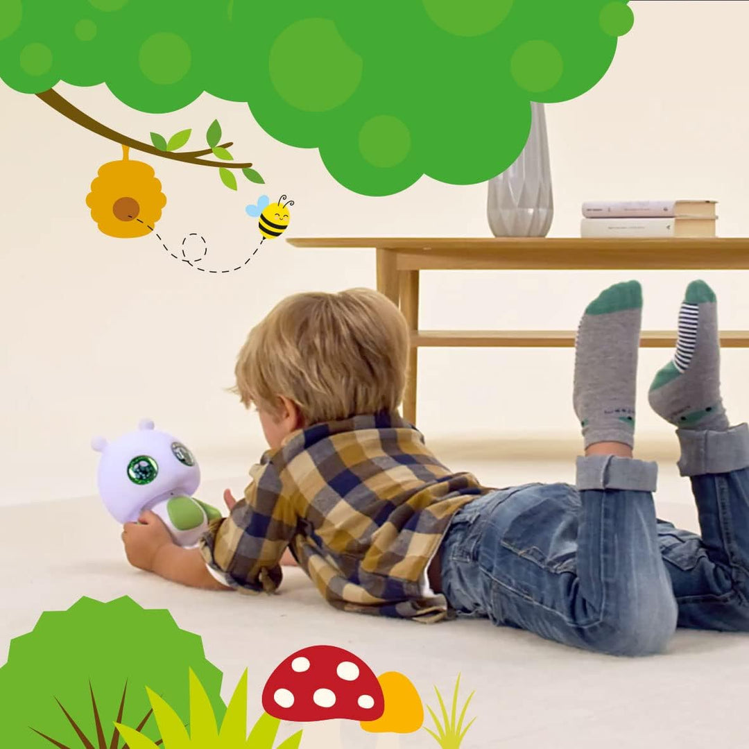 • Er erzählt 10 verschiedene Geschichten über Waldtiere, und sein Köpfchen leuchtet jedes Mal in einer anderen Farbe auf, welche die Handlung widerspiegelt, um Kinder zu motivieren und ihre Aufmerksamkeit zu erregen.