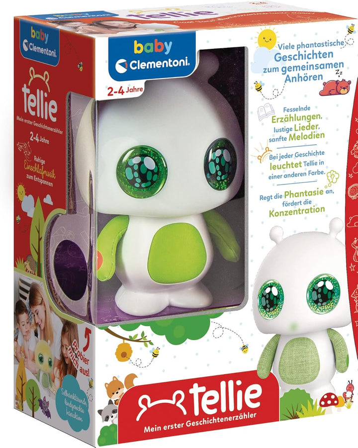 • Eine süsse kleine Figur, die jedes Kind lieben wird! Tellie ist ein freundlicher Alien, der bereit ist, die Kleinen mit drei Möglichkeiten zu unterhalten: Geschichtenerzählen, Musik und Wiegenlied.