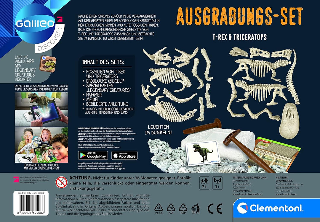 - Lieferumfang: 1 x Galileo Discovery Ausgrabungs-Set T-Rex and Triceratops, Wissenschaft für Kinder ab 7 Jahren von Clementoni