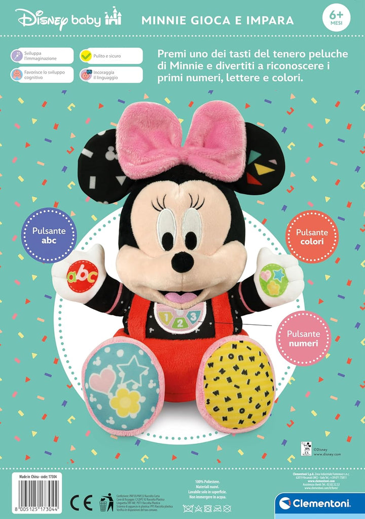 Clementoni Disney Baby Minnie Spiele und Lernen Plüsch, Mehrfarbig, Standard, 17304 Baby Minnie Mous