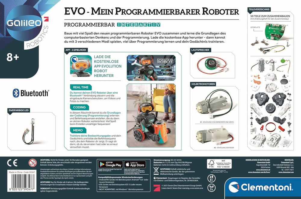 • Lieferumfang: 1 x Galileo Robotics EVO Roboter zum Zusammenbauen und Programmieren für Kinder ab 8 Jahren von Clementoni - Ideal auch als Geschenk zu Weihnachten, Ostern oder zum Geburtstag