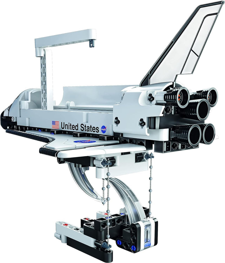 - Das Kind erlebt anhand der Spielanleitung im Handbuch und in der App was hinter der optischen Täuschung steckt: Tensegerie, ein physisches Prinzip, das man entdecken muss. Die verstellbaren Flossen gehen nach oben und unten, die Cargotür öffnet sich