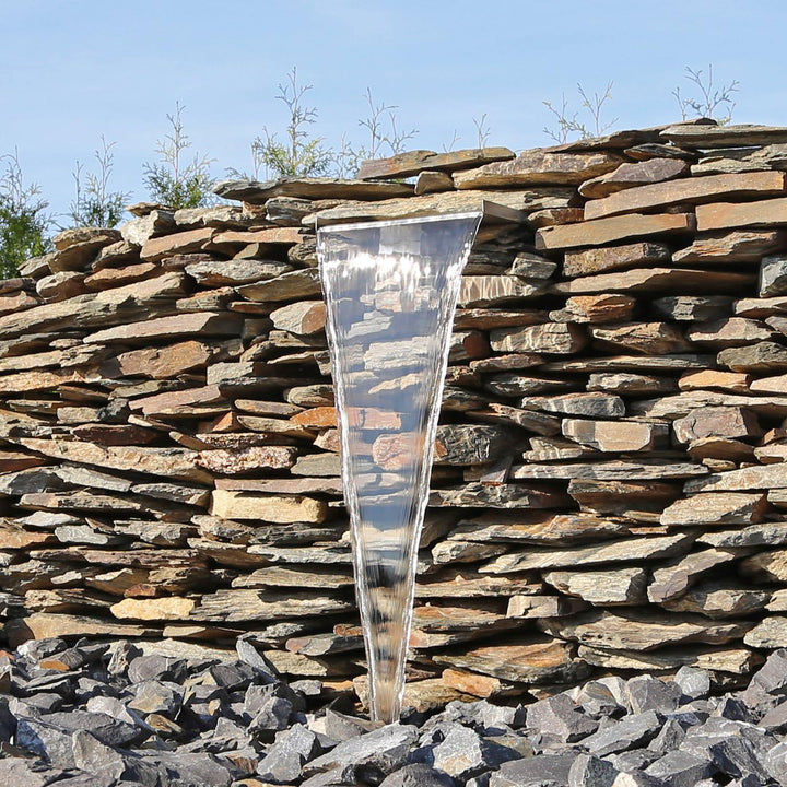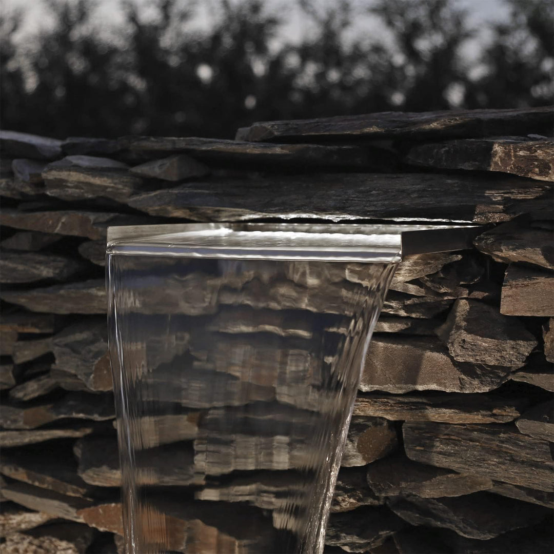 - In der neuen Version verfügt der Wasserfall nun über einen 20cm langen Wasserauslauf, es ist nur der Auslauf sichtbar. Der Kasten des Wasserfalls kann somit komplett in der Mauer verschwinden und Sie erhalten ein optisch hochwertiges Gesamtbild. Zudem